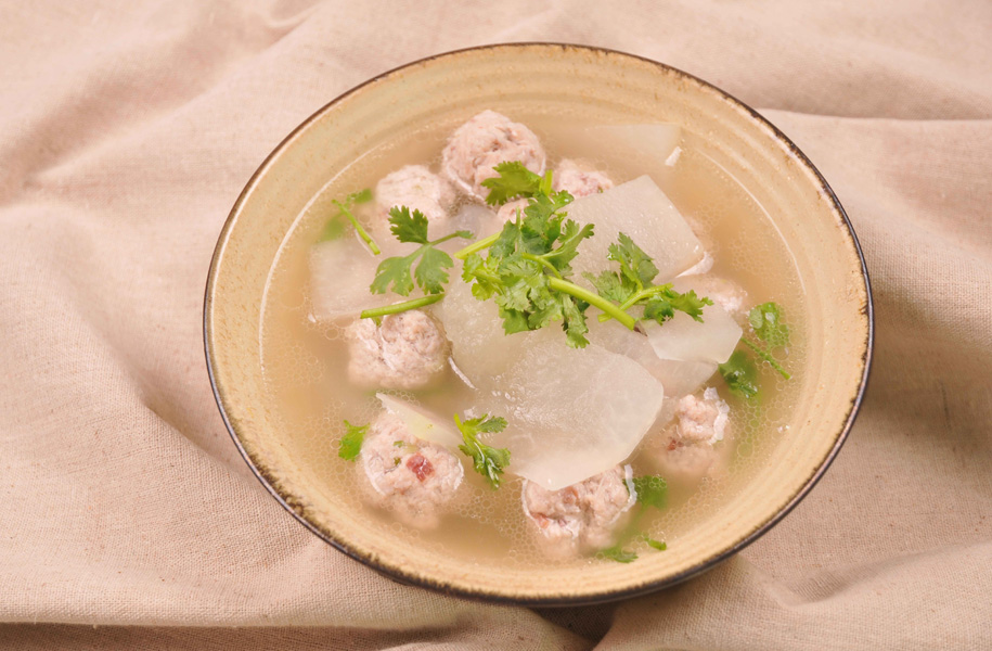 冬瓜利水消腫,而少量的生姜末使得湯性不至于偏涼,火腿提味,不用另外放鹽。