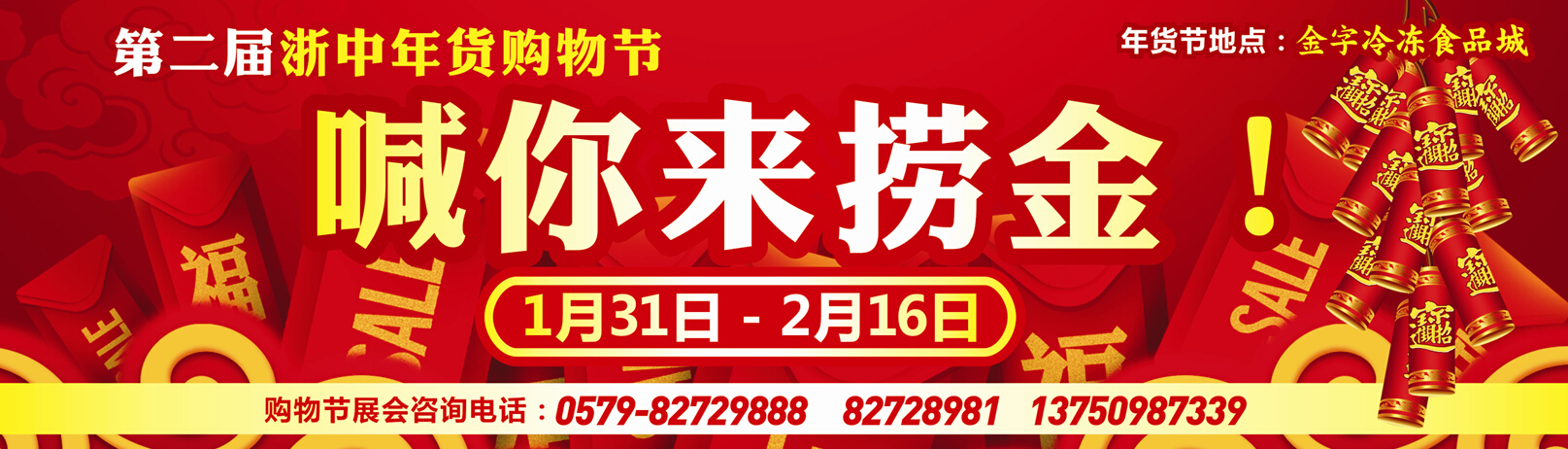 2015年1月31日,第二屆浙中年貨購物節(jié)即將在金字冷凍食品城再次上演年貨盛宴,也許錯(cuò)過了去年的購物節(jié)狂歡,也許錯(cuò)過了年末撈金的絕佳時(shí)機(jī),而這一次,怎能再次錯(cuò)過覆蓋金麗衢20多縣市1000萬人口的年貨盛會(huì)呢?