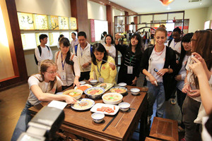 6月24日“海外名校走進金華古村落”活動第一季的42名來自世界各國名校教授、學生乘坐著BRT專車,參觀了金字建設的中國火腿博覽館和世界火腿博覽館,了解傳承千年的中國火腿文化。想了解現代與傳統交融的金華,金華火腿自然是不可或缺的元素,在金字總部的國內首個中國火腿博覽館,學生們深入地了解了金華火腿文化的千年歷史傳承。在中國火腿博覽館內,記錄了金華火腿從唐朝起就聞名天下的歷史淵源……